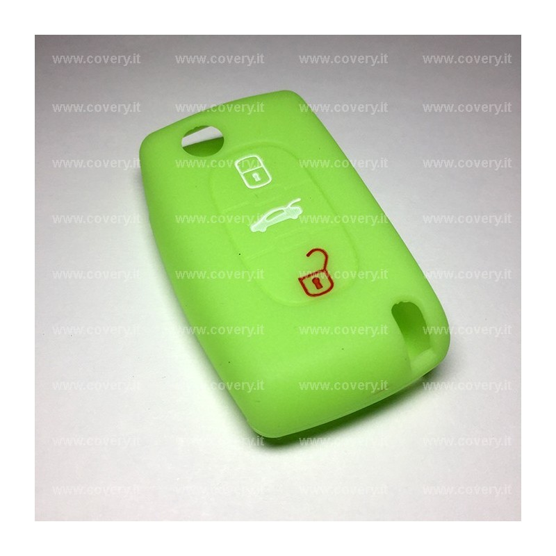 Cover in silicone di colore fluorescente (si illumina al buio) per chiave Peugeot modello 3